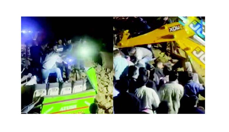 बसवर दरड कोसळली; 15 जणांचा मृत्यू