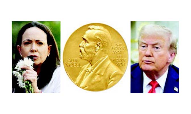 नॉर्वेची राजधानी ओस्लो येथे शांततेच्या नोबेल पुरस्काराची घोषणा करण्यात आली. या पुरस्कारासाठी एकूण 338 उमेदवार रिंगणात होते. अमेरिकेचे राष्ट्राध्यक्ष डोनाल्ड ट्रम्प यांनी स्वतःसाठी हा पुरस्कार मागितला होता, ज्यामुळे त्यांच्या नावाची जोरदार चर्चा रंगली होती. परंतु नोबेल समितीने व्हेनेझुएलाच्या मारिया कोरिना मचाडो यांची निवड करत त्यांना हा पुरस्कार दिला. नोबेल समितीने स्पष्ट केले की, लोकशाही हक्कांसाठी केलेल्या त्यांच्या प्रयत्नांसाठी, हुकूमशाहीपासून शांततापूर्ण लोकशाहीकडे संक्रमण करण्यासाठीच्या संघर्षासाठी मारिया कोरिना मचाडो यांना हा पुरस्कार देण्यात येत आहे.