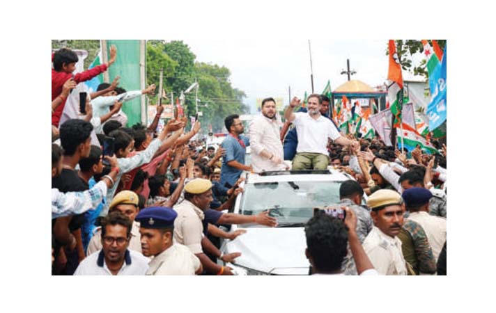 राहुल गांधींच्या व्होटर अधिकार यात्रला बिहारमध्ये प्रारंभ