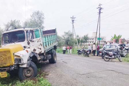 गुरुकुंज मोझरीत भरधाव ट्रकची कारला धडक