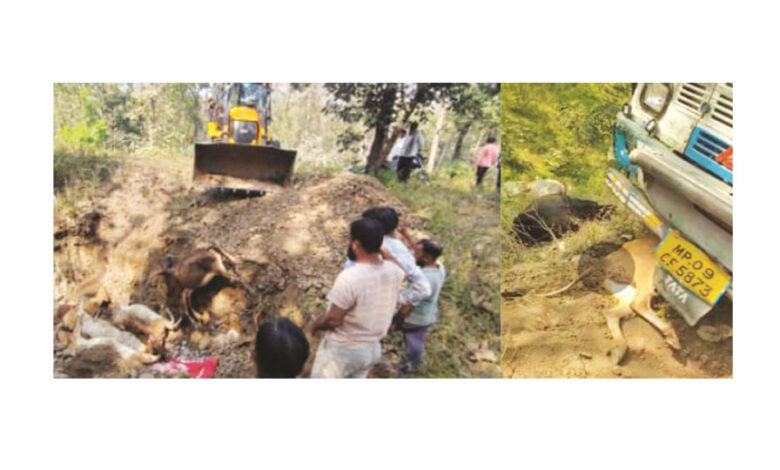 मालवाहू ट्रकखाली 14 गायींचा मृत्यू