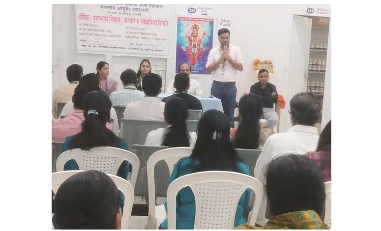 अमरावती /10 फेब्रुवारी : पी.आर. पोटे पाटील आयुर्वेद रुग्णालय, अमरावती यांच्या वतीने 10 फेब्रुवारी रोजी विशेष शिबिराचे आयोजन करण्यात आले होते . सकाळी 10.00 ते 1.00 या वेळेत या विशेष शिबिरात मुळव्याध, फिशर, भगंदर,पोटाचे आजार , मुत्रमार्गाचे विकार ,पायलोनाईडल सायनस ,हर्निया ,हायड्रोसिल, इतर शरीरावर कुठलीही चरबीची, घामाची गाठ, स्तनाच्या गाठी, कान शिवणे, (फाटलेले कान शिवणे), कुरुप काढणे, जखमेवर टाके मारणे, त्वचा विकार या व्याधी वर उपचार करून मार्गदर्शन केले या शिबिराला 98 पेशंट नि सहभाग घेतला व या शिबीर चे उद्घाटक म्हणून आयुर्वेद हॉस्पिटल चे प्राचार्य डॉ रणजित देशमुख हे उपस्थित होते तसेच या शिबिराला लाभलेले अमरावती येथील तज्ञ चिकित्सक डॉ. नितेश ना. सानप ,डॉ. अश्विनी अं खार्डे उपस्थित राहून रुग्णांची तपासणी, उपचार आणि आजाराविषयी मार्गदर्शन केले. तसेच शिबीरचे सूत्र संचालन आणि आभार डॉ. निकिता लांडे यांनी केले.