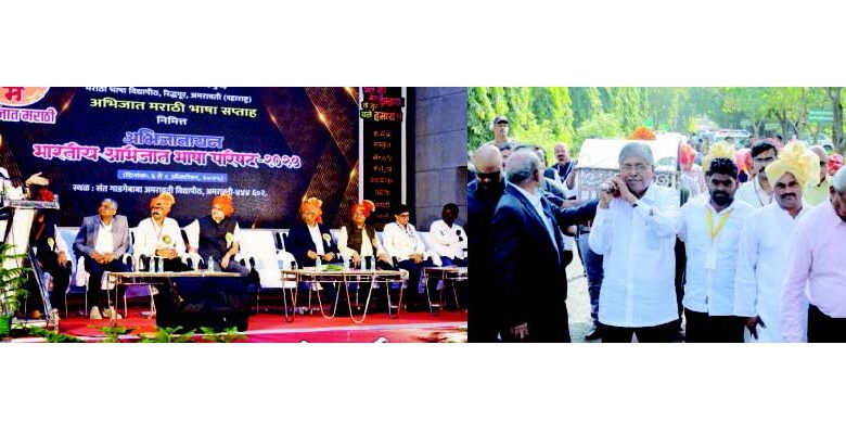 अमरावती /6 ऑक्टोबर : सुमारे अडीच हजार वर्षांचा इतिहास मराठी भाषेला लाभला आहे, त्यामुळे मराठीत संशोधन करणे आवश्यक आहे. मराठीच्या विकासासाठी रिद्धपूर येथे मराठी भाषा विद्यापीठ सुरू करण्यात आले असून, विद्यापीठाने गुणवत्तेची कास धरावी, यासाठी आवश्यक सर्व सहकार्य देण्याची ग्वाही उच्च शिक्षण मंत्री चंद्रकांतदादा पाटील यांनी दिली. अभिजात मराठी भाषा सप्ताहानिमित्त संत गाडगेबाबा अमरावती विद्यापीठात 11 अभिजात भाषांच्या प्रतिनिधींच्या परिषदेची सुरुवात झाली. यावेळी संत गाडगेबाबा विद्यापीठाचे कुलगुरू डॉ. मिलींद बाराहाते, मराठी भाषा विद्यापीठाचे कुलगुरू डॉ. अविनाश आवळगावकर, विद्यापीठ अनुदान आयोगाचे सचिव डॉ. मनिष जोशी, मराठी भाषा विभागाचे सचिव किरण कुळकर्णी आणि सहसचिव अभय खांबोरकर आदी उपस्थित होते.