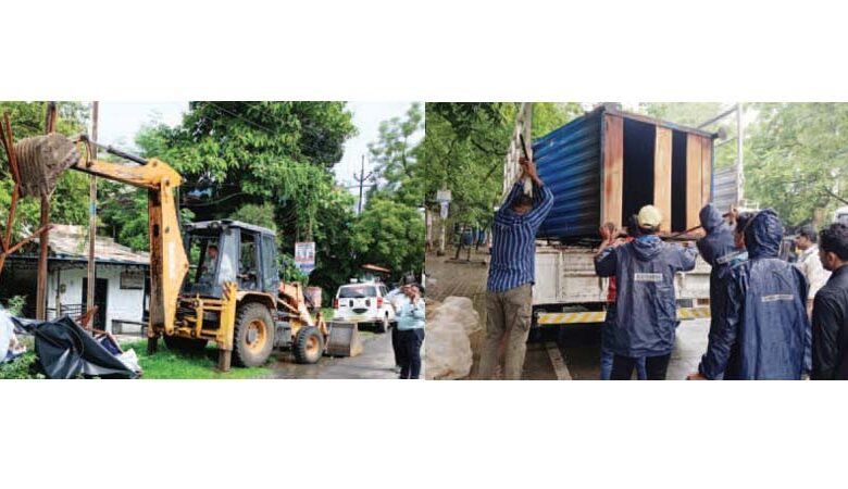 वाहतुकीस अडथळा ठरणार्या अतिक्रमणांवर महानगरपालिकेने धडक कारवाई सुरू केली आहे. सोमवारी सकाळी मालटेकडी ते काँग्रेस नगर पर्यंत अतिक्रमण निर्मूलन पथकाने मोहीम सुरू केली. रस्त्यावर अतिक्रमण करून व्यवसाय करणार्या व्यावसायिकांचे निळे खोके आणि इतर साहित्य जप्त करण्यात आले. कारवाईसाठी जेसीबीचा वापर करण्यात आला. या कारवाईत, अतिक्रमण निर्मूलन पथकासोबत पोलीस कर्मचारी सहभागी झाले होते. ही मोहीम शहराच्या इतर भागांमध्येही राबवण्यात येणार आहे. 9 अनधिकृत खोके जप्त करुन 2 ट्रकधून नेण्यात आले.