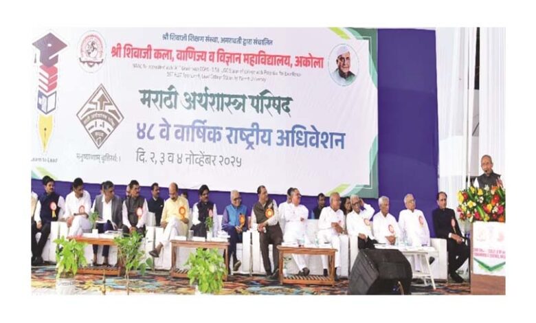 अमरावती / 4 नोव्हेंबर – माजी पंतप्रधान तथा माजी अर्थमंत्री डॉ. मनमोहन सिंग यांच्या अर्थनीतीचा भारतीय अर्थव्यवस्थेवर सकारात्मक प्रभाव राहिल्याचा सूर मराठी अर्थशास्त्र परिषदेच्या सत्रात उमटला. श्री शिवाजी कला, वाणिज्य व विज्ञान महाविद्यालय आणि मराठी अर्थशास्त्र परिषदेच्या संयुक्त विद्यमाने आयोजित 48 वे वार्षिक राष्ट्रीय अधिवेशनात सोमवारी विविध सत्र पार पडले. पहिल्या सत्रात ‘डॉ. मनमोहन सिंग यांचे अर्थशास्त्रीय विचार’ या विषयावर प्राध्यापक आणि