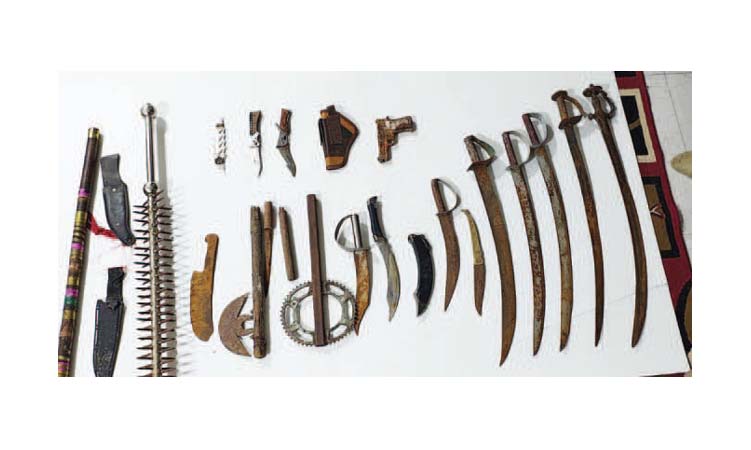पिस्टलसह तलवारी, चाकुंचा समावेश