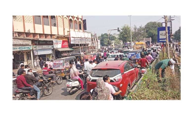 अमरावती /20 नोव्हेंबर : शहरातील वाढती वाहतूक कोंडी दिवसेंदिवस तीव्र होत असून नागरिकांचा संताप वाढत चालला आहे. गांधी चौक, इरविन चौक, राजापेठ, बसस्थानक मार्ग, सरदार पटेल चौक या सर्वच महत्त्वाच्या चौकांवर सकाळ-सायंकाळ वाहतुकीची प्रचंड गर्दी दिसत आहे. वाहनांची वाढलेली संख्या, अरुंद रस्ते आणि चुकीच्या ठिकाणी पार्किंग यामुळे शहरात दर काही मिनिटांनी कोंडीची पुनरावृत्ती होत आहे. राजकमल रेल्वे उड्डाणपूलाचे काम सुरू आहे हे मात्र निमित्त आहे संपूर्ण शहरातच विविध कारणाने वाहतुकी समस्या उग्ररूप धारण करताना दिसून येत आहे.