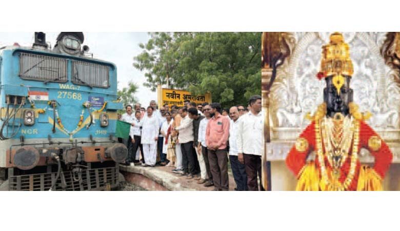 आषाढी एकादशी निमित्त पंढरपूरकडे जाणार्‍या हजारो भाविकांसाठी रेल्वे प्रशासनाने खासगी विशेष रेल्वे सेवा उपलब्ध करून दिली आहे. अमरावती विभागातून पंढरपूरसाठी ही गाडी पहिल्यांदाच नवीन अमरावती स्थानकावरून रवाना झाली आहे. यावेळी पारंपरिक वाद्यांच्या गजरात गाडीचे स्वागत करण्यात आले. स्टेशन परिसर फुलांच्या सजावटीने सुशोभित करण्यात आला होता. यावेळी खासदार बळवंत वानखडे यांनी प्रवाशांना शुभेच्छा देताना सांगितले की, वारकर्‍यांचा पंढरपूर प्रवास सुखकर होण्यासाठी आणि अमरावतीच्या नागरिकांना थेट सुविधा मिळावी, यासाठी रेल्वे प्रशासनासोबत सातत्याने पाठपुरावा करण्यात आला.