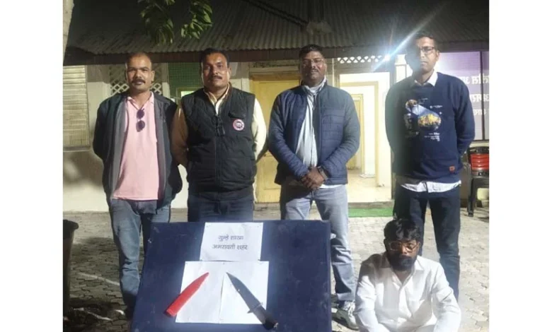 अमरावती / 8 जानेवारी : शहरातून हद्दपार करण्यात आलेला एक कुख्यात गुंड पुन्हा शहरात शिरकाव करून सार्वजनिक ठिकाणी हातात धारदार शस्त्र घेऊन दहशत माजवत असल्याची धक्कादायक घटना समोर आली आहे. गुन्हे शाखा अमरावती शहरच्या पथकाने अत्यंत सतर्कता दाखवत या तडीपार गुंडाला शस्त्रासह अटक केली आहे. उमेश महादेवराव मेश्राम असे या 50 वर्षीय आरोपीचे नाव असून, त्याच्याकडून एक लोखंडी चाकू जप्त करण्यात आला आहे. या कारवाईमुळे बडनेरा परिसरातील नागरिकांनी सुटकेचा निश्वास टाकला असून पोलिसांच्या कामगिरीचे कौतुक होत आहे. 8 जानेवारी रोजी गुन्हे शाखेला खात्रीशीर बातमी मिळाली की, मिलचाळ नवी वस्तीकडे जाणार्या रस्त्यावर एक इसम हातामध्ये चाकू घेऊन लोकांमध्ये भीतीचे वातावरण निर्माण करत आहे. मिळालेल्या माहितीनुसार तो इसम तडीपार असूनही बेकायदेशीरपणे शहरात वावरत होता. पोलीस निरीक्षक संदीप चव्हाण यांच्या मार्गदर्शनाखाली पथकाने तातडीने घटनास्थळी धाव घेतली आणि सापळा रचून उमेश मेश्रामला शस्त्रासह ताब्यात घेतले. तपासणी दरम्यान त्याच्याकडून 1 हजार रुपये किमतीचा लोखंडी चाकू जप्त करण्यात आला. याप्रकरणी बडनेरा पोलीस ठाण्यात भारतीय हत्यार कायदा कलम 4/25 सह महाराष्ट्र पोलीस कायद्याच्या कलम 142 व 135 अन्वये गुन्हा नोंदवून पुढील कायदेशीर प्रक्रिया करण्यात आली आहे.पोलीस आयुक्त राकेश ओला, उपायुक्त गणेश शिंदे, श्याम घुगे आणि रमेश धुमाळ यांच्या मार्गदर्शनाखाली ही मोहीम राबवण्यात आली. यात सहाय्यक पोलीस आयुक्त शिवाजी बचाटे यांच्यासह संदीप चव्हाण, महेश इंगोले, गजानन ढेवले, मनोज ठोसर, मंगेश परीमल, विकास गुडधे, नईम बेग, योगेश पवार आणि सागर ठाकरे या अनुभवी पोलीस कर्मचार्यांचा सहभाग होता.