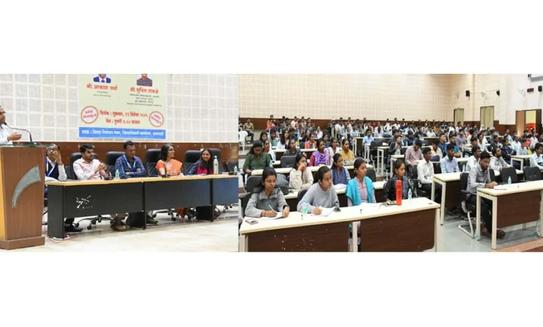 अमरावती /19 डिसेंबर : केंद्रीय आणि राज्य शासनात सेवेमध्ये रूजू होण्यासाठी स्पर्धा परिक्षा हा मार्ग आहे. यात प्राथमिक चाचणी, मुख्य परिक्षा आणि मुलाखत अशा टप्प्यातून निवड केली जाते. या परिक्षांमध्ये यश मिळविण्यासाठी अभ्यासक्रमावर लक्ष केंद्रीत करावे, असा सल्ला वाशिम येथील सहायक जिल्हाधिकारी आकाश वर्मा यांनी दिला. जिल्हा नियोजनच्या सभागृहात आज स्पर्धा परिक्षेची तयारी करणार्या विद्यार्थ्यांसाठी सहायक जिल्हाधिकारी आकाश वर्मा आणि उपजिल्हाधिकारी सुनिल टाकळे यांचे मार्गदर्शन शिबीर घेण्यात आले. यावेळी सहायक जिल्हाधिकारी कौशल्या एस., सहायक आयुक्त विकास खंदारे, जिल्हा ग्रंथालय अधिकारी डॉ. सुरज मडावी, ग्रंथालय सहायक संचालक राजेश पाटील, जिल्हा नियोजन अधिकारी वर्षा भाकरे आदी उपस्थित होते. केंद्रीय लोकसेवा आयोगाच्या 2024च्या परिक्षेत 20वा क्रमांक पटकाविलेले आकाश वर्मा यांनी यावेळी मार्गदर्शन केले. वर्मा यांनी, परिक्षा देण्यामागील उद्देश काय आहे, याचा विचार करून ही परिक्षा द्यावी. परिक्षा देण्याची संधी ही प्रत्येकाला असल्याने शासनात काम करण्याची संधी प्राप्त होते. केंद्रीय लोकसेवा आयोगाच्या परिक्षांमुळे देशपातळीवर तसेच देशाबाहेरही सेवेची संधी प्राप्त होते. या परिक्षांची तयारी करीत असताना प्रामुख्याने अभ्यासक्रमावर लक्ष्य केंद्रीत करणे आवश्यक आहे. परिक्षांमध्ये काही प्रश्न हे अत्यंत कठिण असतात. त्यावेळी दिलेल्या पर्यायापैकी कोणते उत्तर योग्य राहिल, याची पडताळणी केल्यास मार्क वाढविण्यास मदत होईल. प्रामुख्याने राज्यशास्त्र, अर्थशास्त्र, इतिहास, भूगोल, चालू घडामोडी या विषयांचा प्रामुख्याने अभ्यास करावा. परिक्षांमध्ये वेळेचा सदुपयोग आणि यश मिळविण्यासाठी चाचणी परिक्षा देणे आवश्यक आहे. यामुळे परिक्षेचा सराव होण्यास मदत मिळते. निबंध लिहिताना दिलेल्या विषयाला न्याय देणे गरजेचे आहे. यासाठी भारतीय संविधान, चालू घडामोडी आणि इतर साहित्याचा उपयोग होऊ शकतो. विकास खंदारे यांनी स्पर्धा परिक्षांची कार्यशाळा आयोजनामागील उद्देश सांगितला. स्पर्धा परिक्षांमध्ये यशस्वी झालेल्यांकडून स्थानिक विद्यार्थ्यांना मार्गदर्शनाचा लाभ देण्यासाठी हा उपक्रम असल्याचे सांगितले. सारिका काळे यांनी सूत्रसंचालन केले. राजेश पाटील यांनी आभार मानले.
