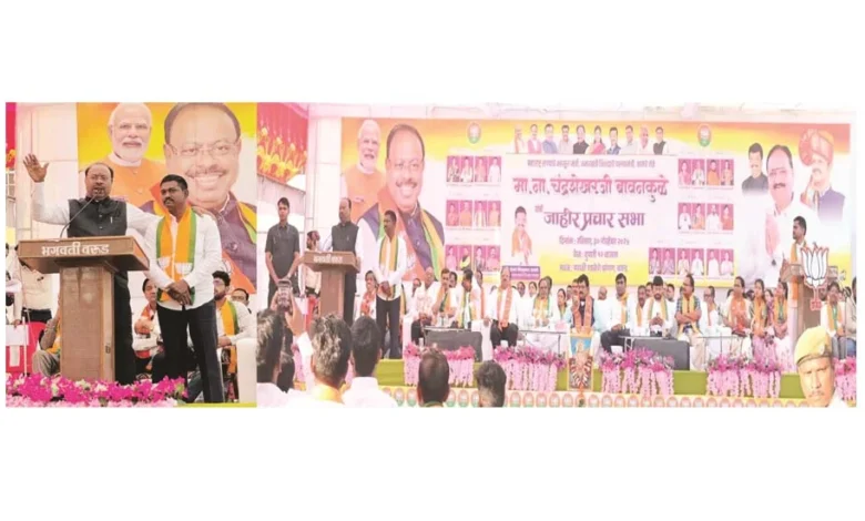 भारतीय जनता पार्टीने वारंवार विकासालाच महत्व दिलेले आहे, अशा स्थितीमध्ये वरुड, शेंदुरजनाघाट आणि मोर्शी या तिन्ही शहरांचा विकास करण्याची जबाबदारी मी स्वतः घेतो. तुम्ही फक्त भारतीय जनता पार्टीच्या सर्व उमेदवारांना निवडून द्या, त्याचे साक्षीदार म्हणुन मुख्यमंत्री देवेंद्र फडणवीस आणि मी स्वतः राहील आणि या तिन्ही शहरांचा विकास केल्याशिवाय आम्ही स्वस्थ बसणार नाही. आतापर्यंतच्या इतिहासात गेल्या 10 वर्षांमध्ये जेवढा विकास झाला तेवढा विकास आजपर्यंत तुम्ही बघितला नसेल परंतु भारतीय जनता पार्टीच्या माध्यमातून या तिन्ही नगर परिषदेचा जो महत्त्वपूर्ण विकास करावयाचा आहे, तो केल्याशिवाय आम्ही स्वस्त बसणार नाही, येत्या 5 वर्षांमध्ये एकही काम शिल्लक राहणार नाही, अशी ग्वाही देत वरुड मोर्शी आणि शेंदुजनाघाटचा विकास करीत कायम कायापालट केल्याशिवाय आमदार उमेश उर्फ चंदू यावलकर यांना स्वस्थ बसु देणार नाही, असे प्रतिपादन राज्याचे महसुलमंत्री तथा जिल्हयाचे पालकमंत्री चंद्रशेखर बावनकुळे यांनी केले. ते न.प.मराठी शाळेच्या प्रांगणात भारतीय जनता पार्टी उमेदवारांसाठी आयोजीत प्रचारसभेत बोलत होते. यावेळी व्यासपीठावर राज्यसभा खा.डॉ.अनिल बोंडे, भाजपा जिल्हाध्यक्ष रविराज देशमुख, सरचिटणीस डॉ सुमित पवार, भाजपा तालुकाध्यक्ष राजकुमार राऊत, शहराध्यक्ष राहुल आगरकर, नगराध्यक्ष पदाचे उमेदवार ईश्वर सलामे, प्रसिद्ध स्त्री व प्रसुती तज्ञ डॉ.मनोहर आंडे, माजी जि.प.सदस्य गोपाल मालपे, श्रीधर सोलव, माजी जि.प.सभापती अर्चना मुरुमकर, निळकंठ मुरुमकर, मोरेश्वर वानखडे, अमित कुबडे, माजी शहराध्यक्ष योगेश्वर खासबागे, अनिता तिखिले, माजी पं.स.सभापती विक्रम ठाकरे, धनंजय उमप, भाग्येश देशमुख, प्रभाकर काळे, राजू हजारे, रुपाली सोंडे, वरुड नगर परिषदेचे भारतीय जनता पार्टीचे सर्व उमेदवार व्यासपीठावर उपस्थित होते. याप्रसंगी राज्यसभा खासदार डॉ.अनिल बोंडे, आमदार उमेश उर्फ चंदू यावलकर यांचेसह अनेकांनी आपले विचार व्यक्त केले. यावेळी बोलतांना उमेश उर्फ चंदू यावलकर यांनी उपस्थित मतदारांना भावनिक साद देत भाजपाला मतदान करण्याचे आवाहन केले. या कार्यक्रमाला मोठया संख्येने शहरवासियांनी हजेरी लावली होती. कार्यक्रमाचे संचालनप्रा.कमलनारायण उईके यांनी केले.